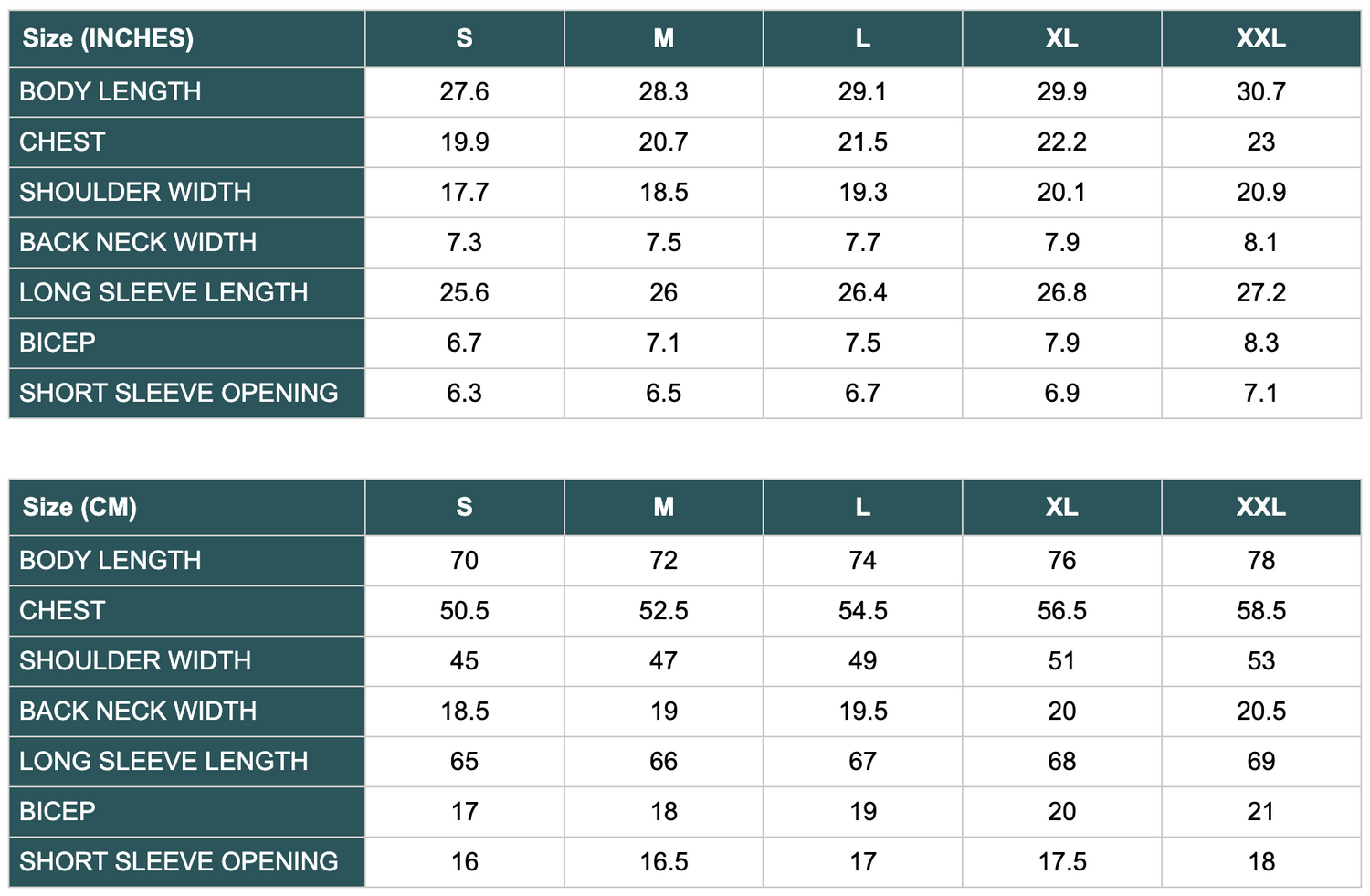 Sizing Chart
