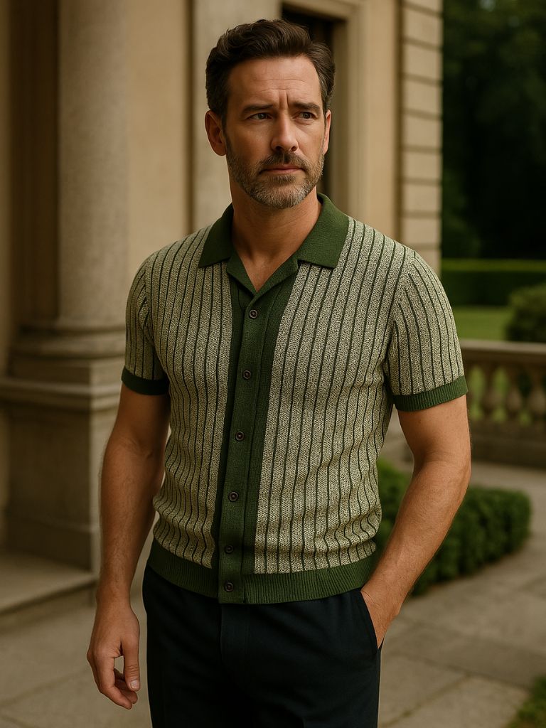 Striped Knit Polo Shirt - Nordwr